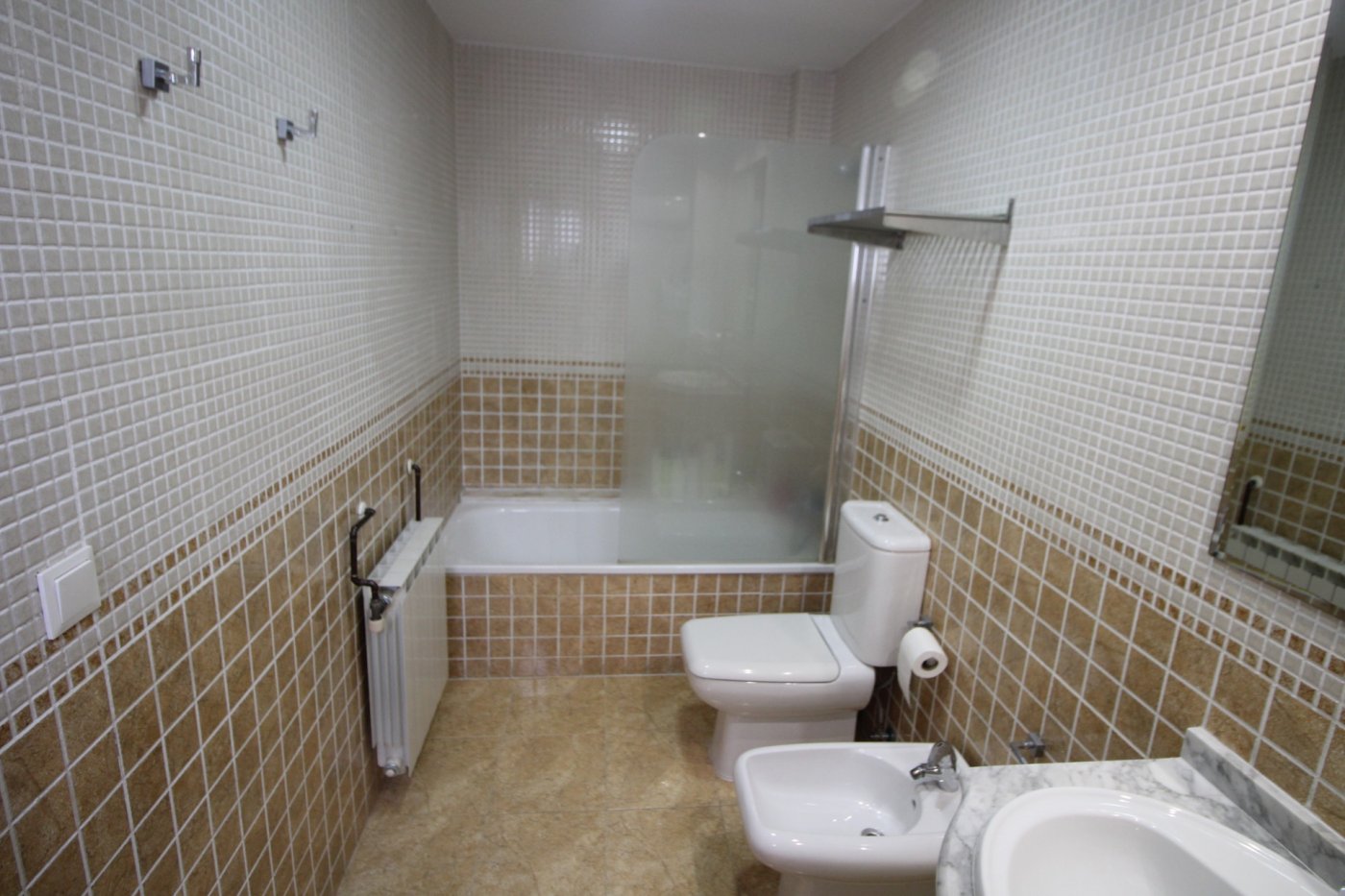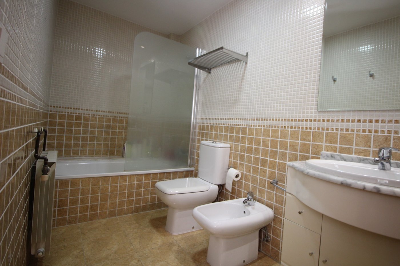 Esta gran vivienda de 120m2. Consta de tres habitaciones, con armarios empotrados, cocina office con galería, 2 baños completos (ducha y bañera), calefacción central por radiadores de gas natural, 3 aparatos de aire acondicionado, frio / calor. Todas las estancias son grandes, cómodas y muy luminosas. La casa cuenta con garaje grande y trastero de 6 m2. Todo incluido en el precio. Y la posibilidad de adquirir otra plaza de garaje con trastero.