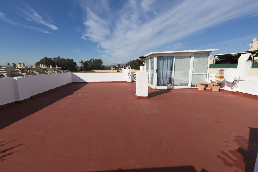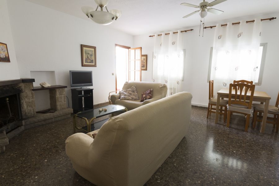 La vivienda esta distribuida en tres habitaciones, dos dobles y una sencilla, dos cuartos de baño completos, cocina con salida a galería y salón comedor con chimenea , salida a un estupendo balcón con vistas al complejo, en la parte alta de la vivienda dispone de terraza solárium donde podrás disfrutar de las noches de verano.