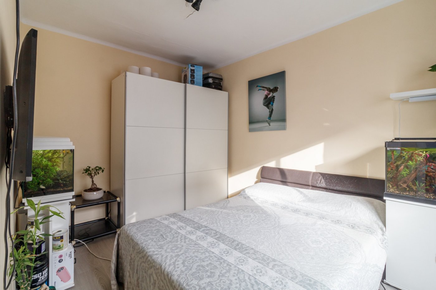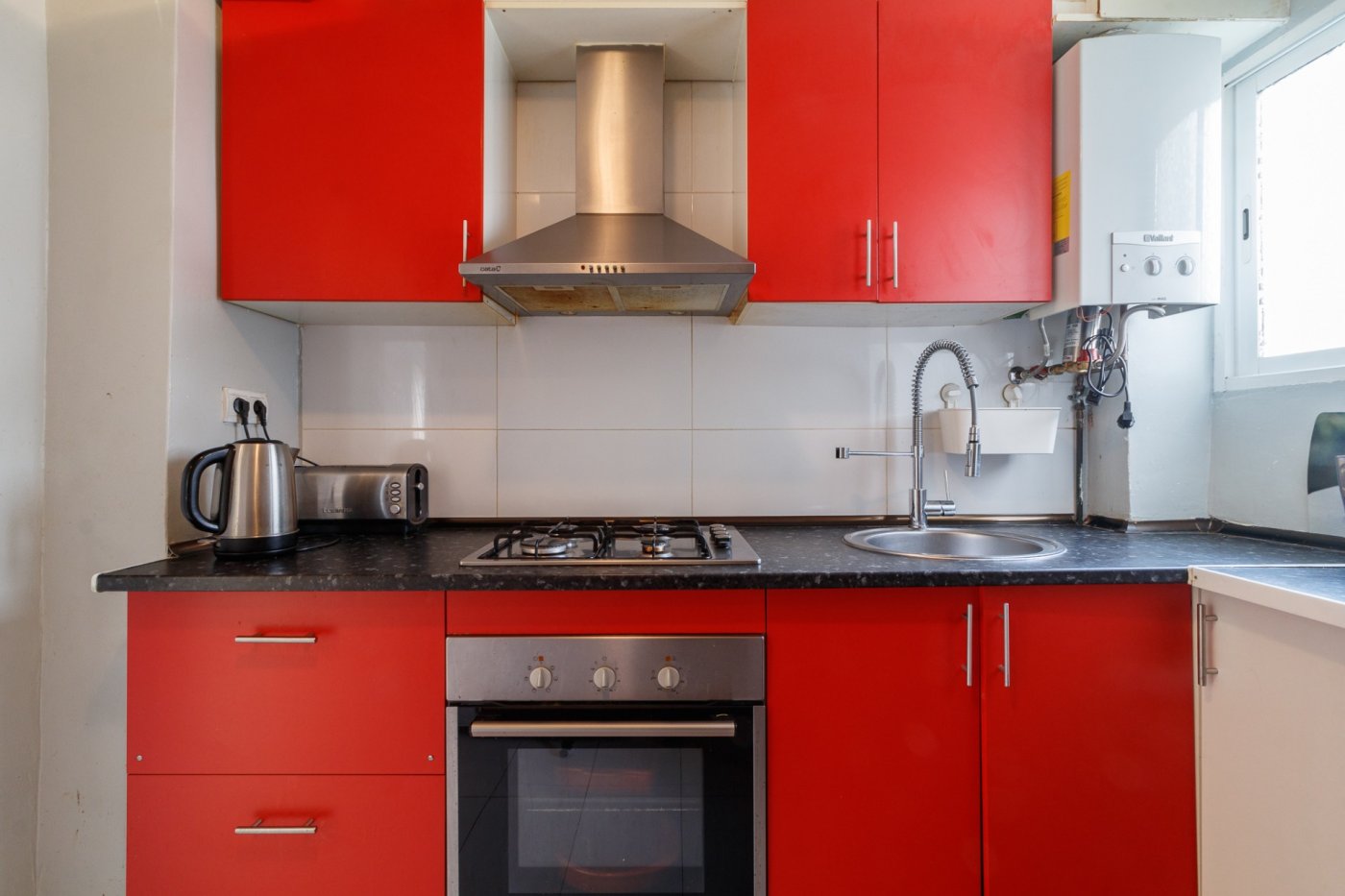 Reformada recientemente, se le han alisado paredes, colocado suelo de tarima, ventanas climalit lacadas en blanco, y mobiliario de cocina completo, carpintería interior en sapelli.
